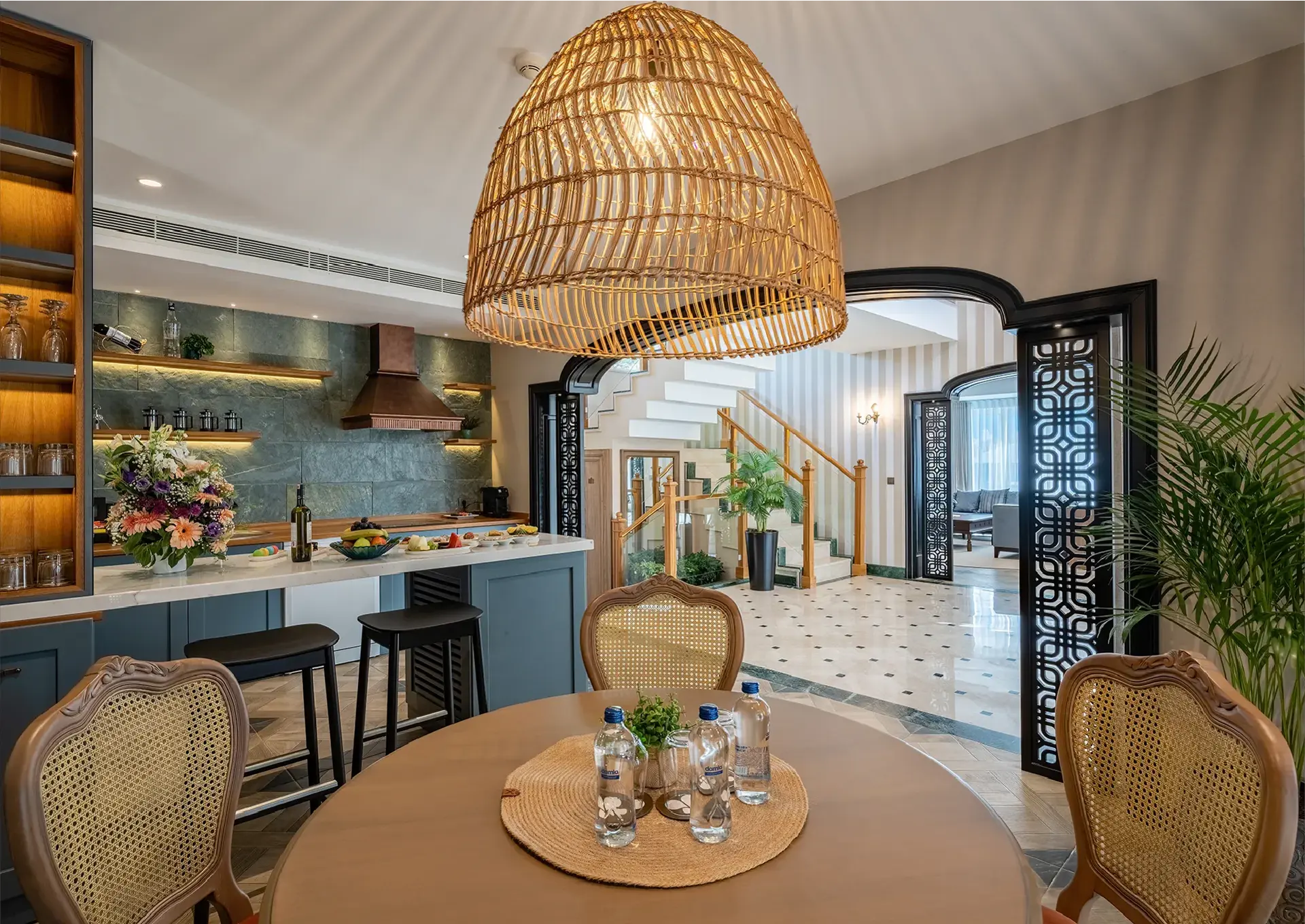 Bathroom Bouquet Supplies , Iron , Hot Drink set , Laundry Service , Room Service , pillow menu , Expresso machine , Maxi Bar , VIP setup Arrival day Turn-down service , Unlimited access to the A la Carte menu is available, but reservations are required in advance , Cabana , BBQ service is available in the villa once for every 7 nights stayed.