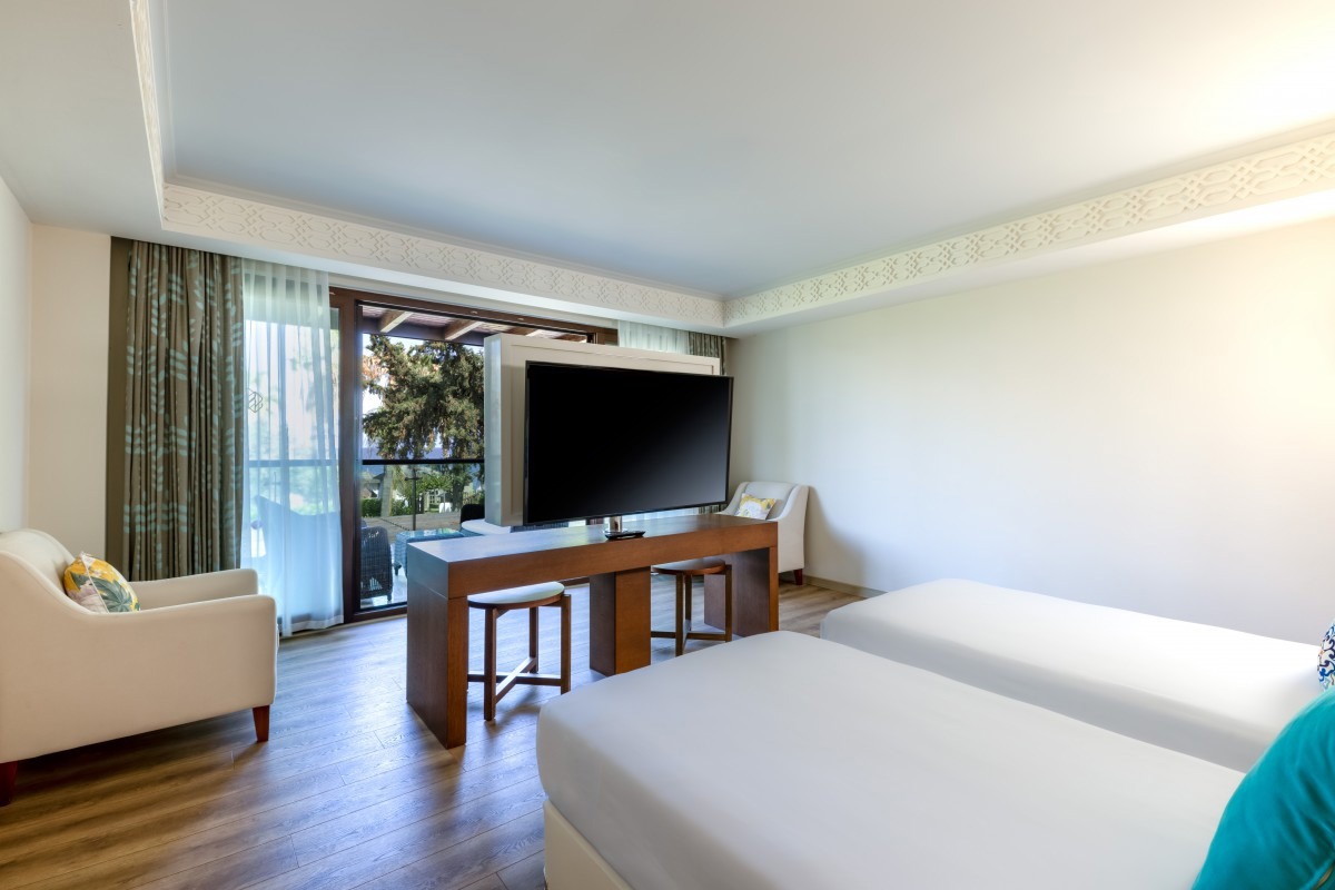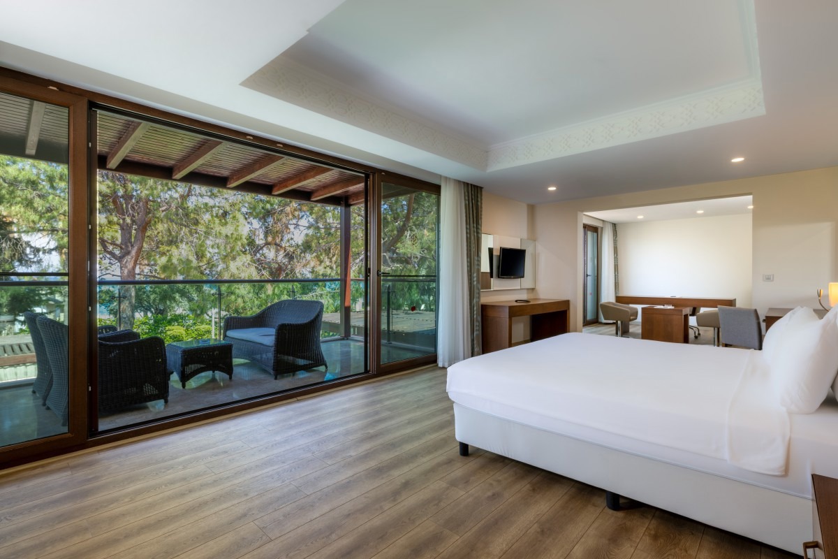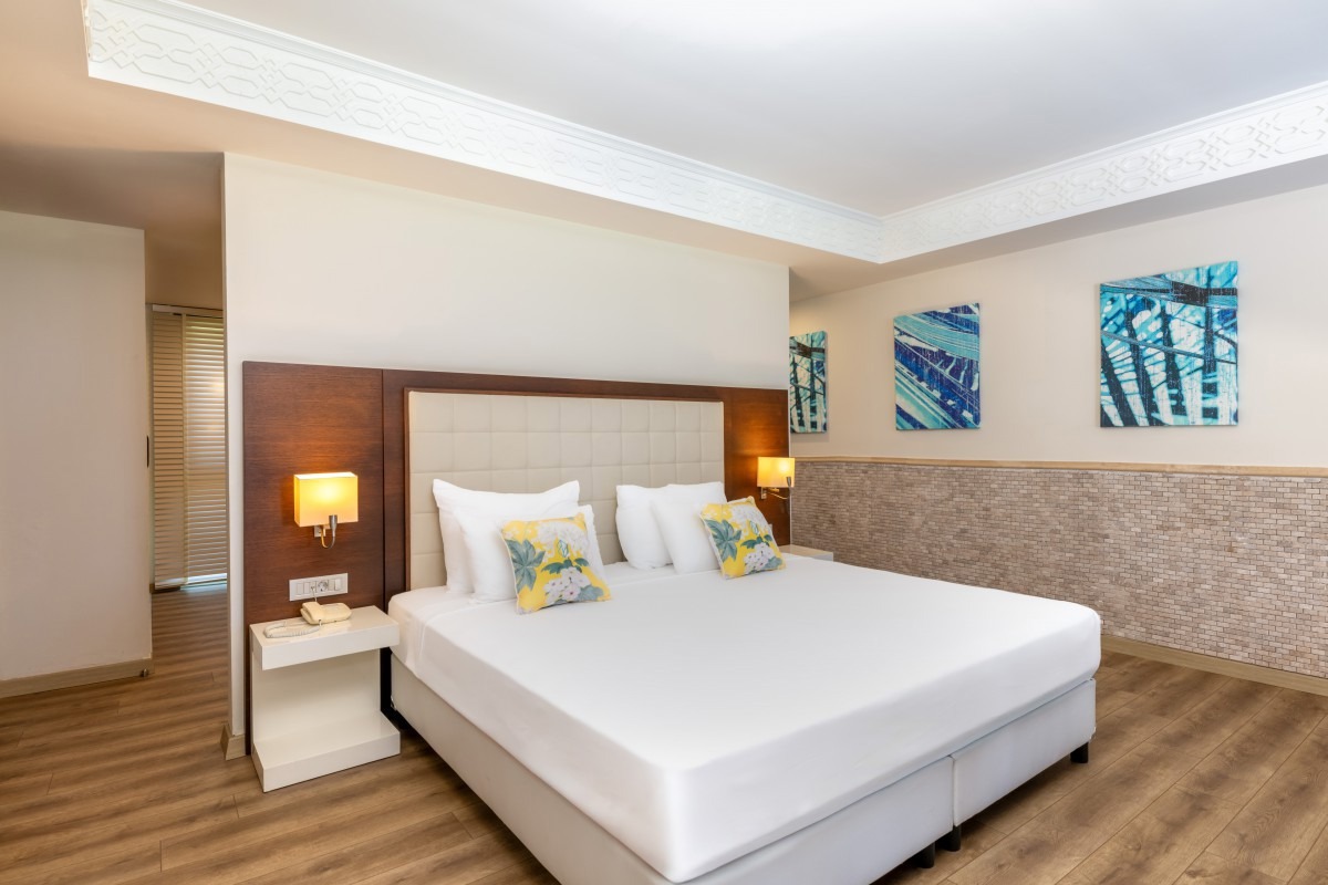 The resort features an extensive accommodation portfolio including hotel rooms, suites, and exclusive villa options designed for guests seeking elevated privacy and premium comfort. The villa concept at Nirvana Mediterranean Excellence delivers a high-end residential experience within a five-star resort environment, combining spacious living areas, private outdoor spaces, and enhanced personalized services. Select villas feature private pools, landscaped gardens, and exclusive access privileges, offering a seamless blend of seclusion and luxury hospitality.