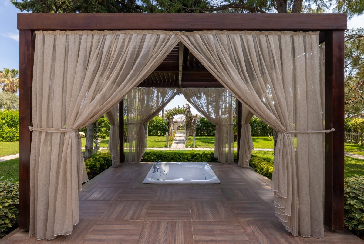 The resort boasts a private sandy-pebble beach equipped with sun loungers, umbrellas, cabanas, and beach service. Carefully designed beachfront areas allow guests to enjoy the Mediterranean in both social and more tranquil settings, ensuring comfort and exclusivity.