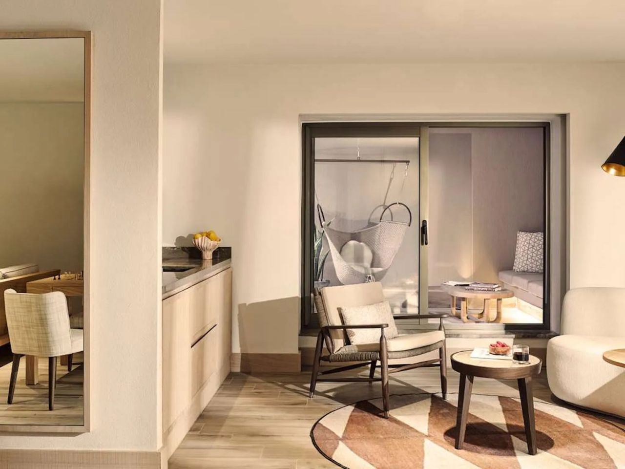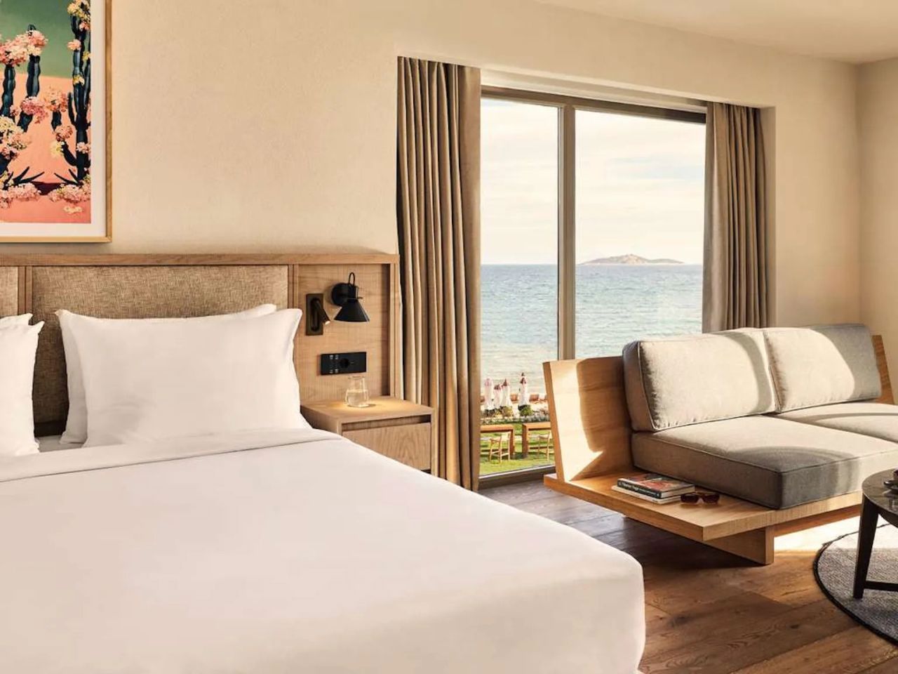Designed with a bohemian-chic aesthetic, the hotel features natural textures, a light color palette, and contemporary architectural elements, creating a minimalist yet striking visual identity. Expansive outdoor areas, airy terraces, and living spaces integrated with the sea provide guests with a sense of both freedom and exclusivity.