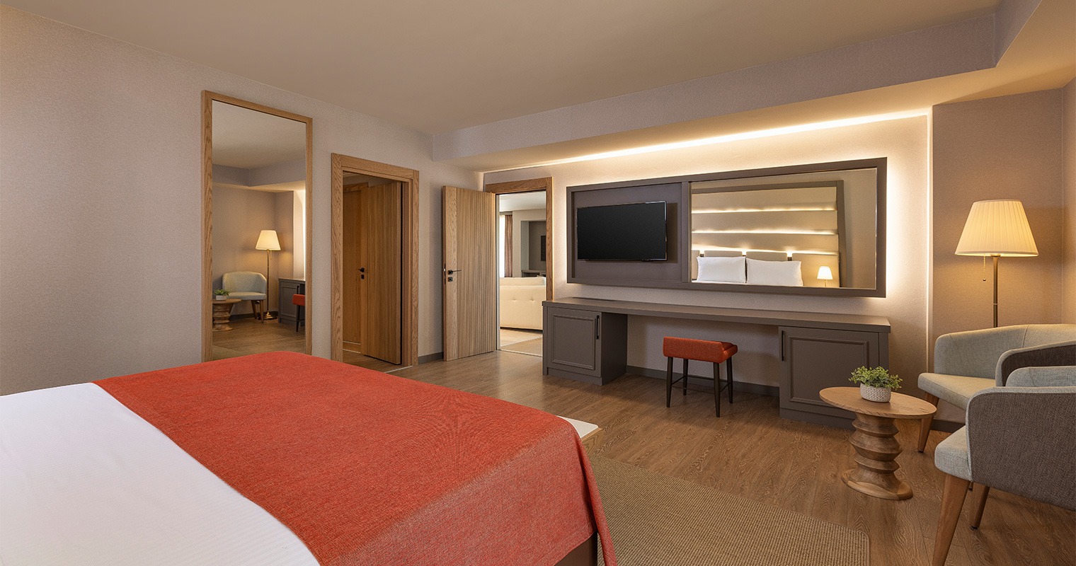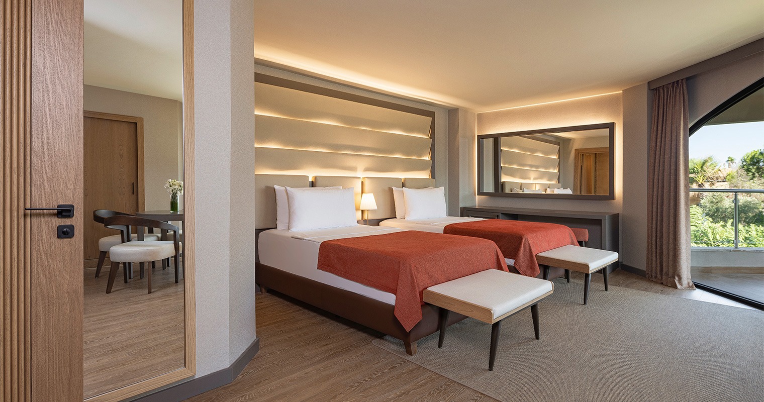 Bohemia Private Pool Villa Step into your dream holiday in Bohemia’s Private Pool Villas, where you can enjoy direct access to your own private pool whenever you wish—perfect for refreshing moments under the Mediterranean sun. Spanning an expansive 250 m², this elegant and comfortable villa is offered with a luxury all-inclusive concept, delivering an unforgettable stay filled with privacy, space, and exclusive services. Featuring 4 bedrooms and 1 spacious living room, the villa comfortably accommodates up to 8 adults and 1 child. With 5 TVs throughout the villa, it’s ideal for spending quality time with family or friends in total comfort. Enhance your stay with complimentary access to à la carte restaurants, where you can explore flavors from world cuisine, while the enhanced minibar adds an extra touch of indulgence to your holiday. Located by the breathtaking turquoise waters of the Mediterranean, Bohemia’s Private Pool Villas offer a peaceful escape bathed in golden sunshine—an experience designed to refresh your soul and create lasting memories. With only two villas available, don’t miss the chance to discover this truly exclusive retreat.