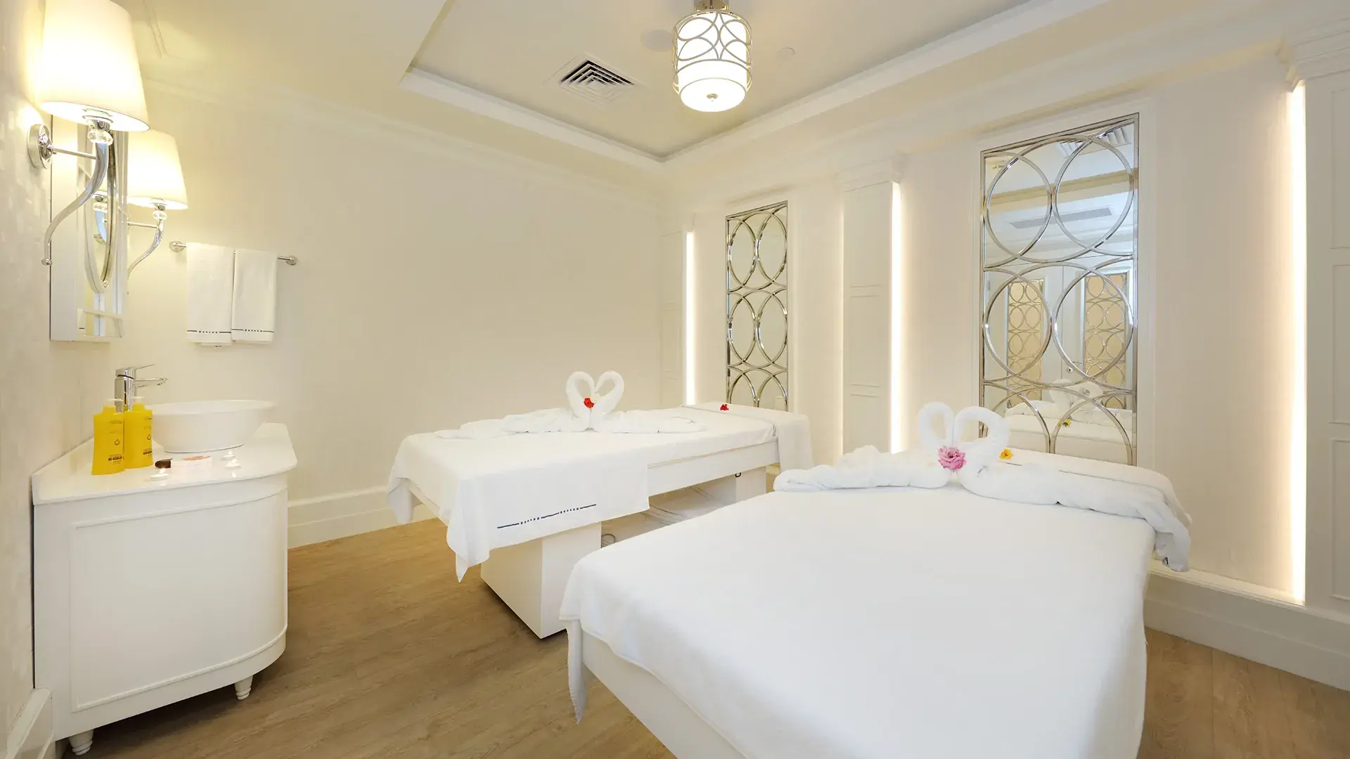 Island Villas offer an ultra-luxury holiday experience, ideal for guests who value privacy and exclusivity, featuring a private pool and a secluded garden. With a total living area of 317 m², each villa is flawlessly designed with five spacious bedrooms and an elegantly detailed living room—creating the perfect atmosphere for unforgettable stays. Designed to exceed expectations, the villas are equipped with a fully fitted kitchen, Turkish bath, sauna, steam room, private fitness room with full equipment, massage room, and a Jacuzzi, delivering the highest standards of comfort and wellness. Throughout the stay, guests enjoy a range of exclusive privileges including personal butler service, dedicated golf buggy allocation, VIP airport transfer service, access to VIP Beach Pavilions, complimentary VIP in-villa room service, turn-down service, late check-out, and a private bar offering 70 cl selections of premium local and international alcoholic beverages—all carefully curated to enhance a truly distinguished holiday experience.