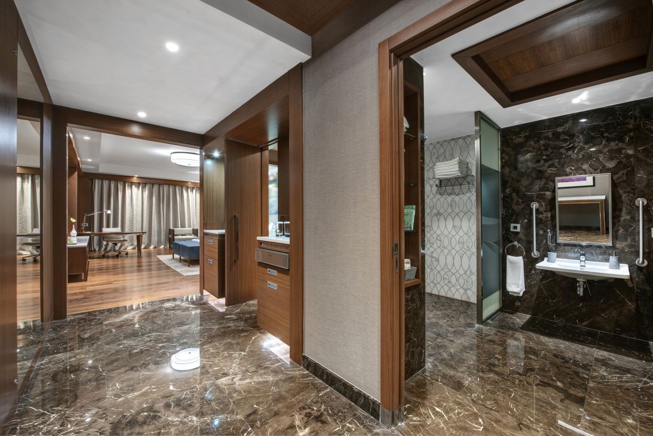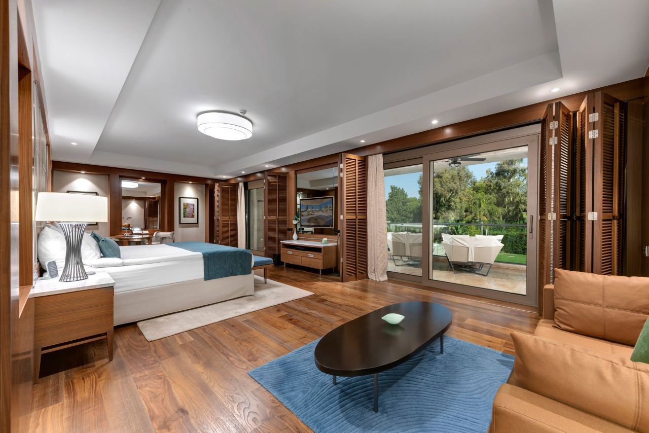 Regnum Carya располагает коллекцией роскошных номеров, люксов, swim-up вилл и эксклюзивных частных вилл, каждая из которых выполнена в современном архитектурном стиле с использованием премиальных материалов и просторных планировок. Панорамные стеклянные фасады и просторные террасы создают гармоничную связь между элегантными интерьерами и природной красотой средиземноморского пейзажа.