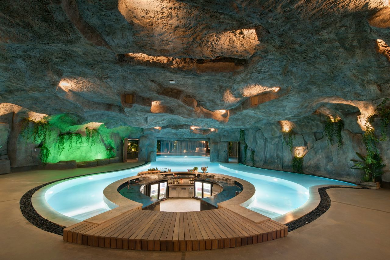 • Частный бассейн (442 кв. м), бассейн-водопад, скрытый крытый подогреваемый бассейн, бар у бассейна, беседка у бассейна