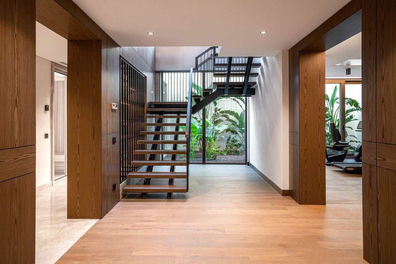 Outdoors, the villa showcases a large private swimming pool set within an expansive landscaped garden, offering complete privacy for relaxation, private gatherings, or exclusive celebrations. Spacious terraces and sun lounging areas allow guests to fully embrace the Mediterranean climate in a secluded and tranquil environment.