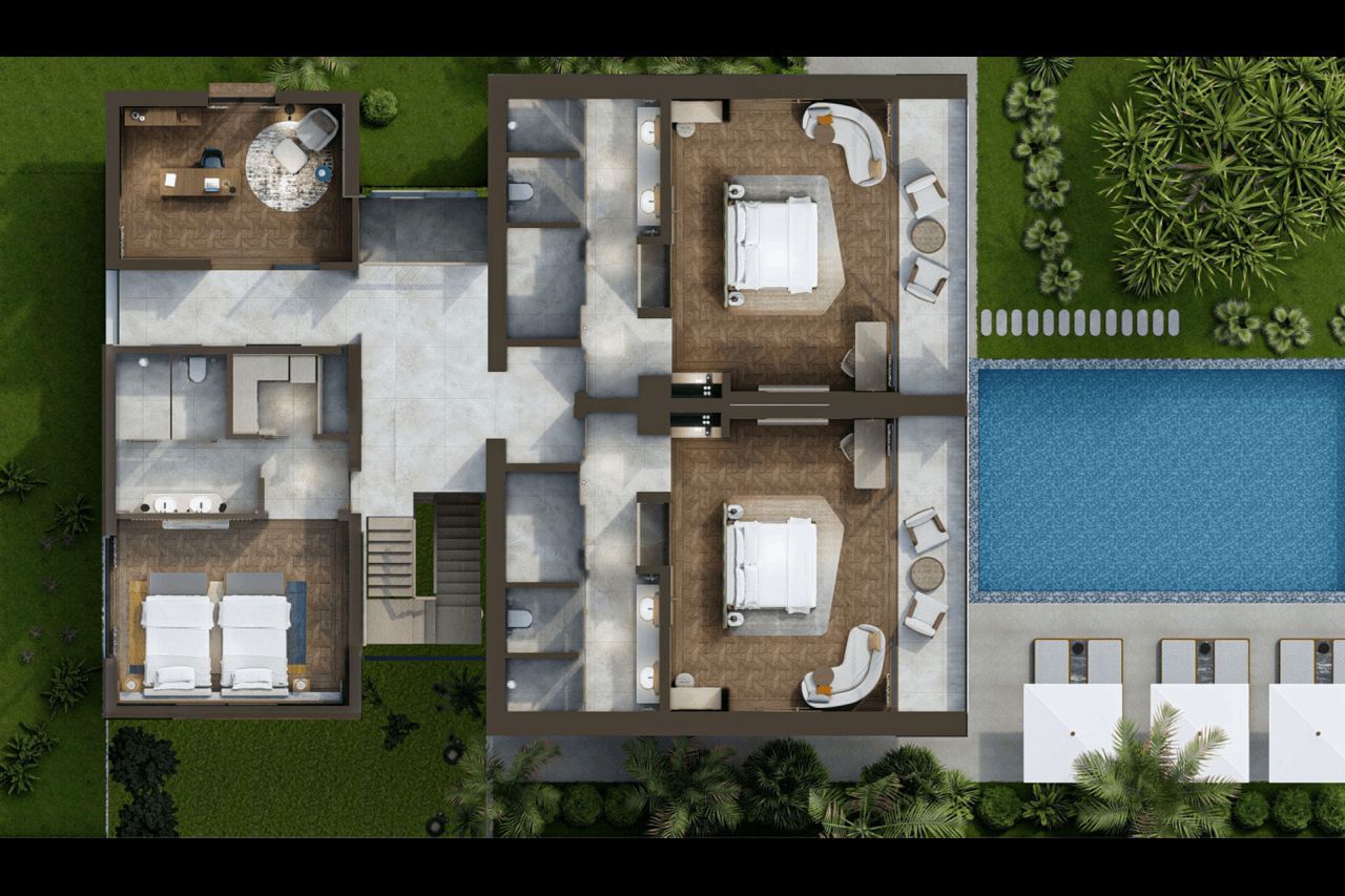 Representing the most spacious and prestigious category within the exclusive Bayou Villas collection, the Bayou Villa With Four Bedrooms delivers a true villa-style Mediterranean living experience. Designed for large families, VIP guests, and high-profile travelers, this villa offers expansive private space combined with elevated five-star service.