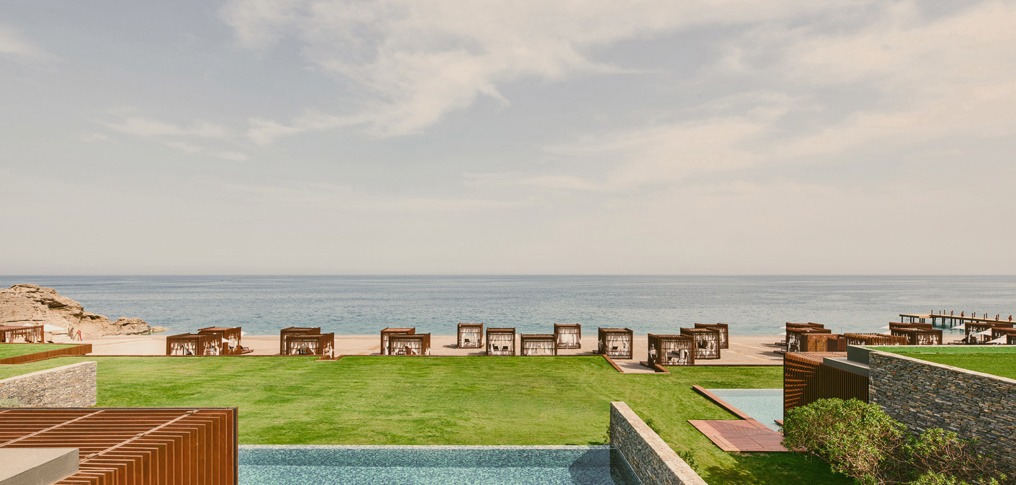 Aquatic luxury is central to the resort’s identity, with multiple outdoor infinity pools, heated pools, children’s pools, and direct access to crystal-clear private bays. Stylish sun decks, private cabanas, and attentive beach service create a seamless transition between relaxation and indulgence.