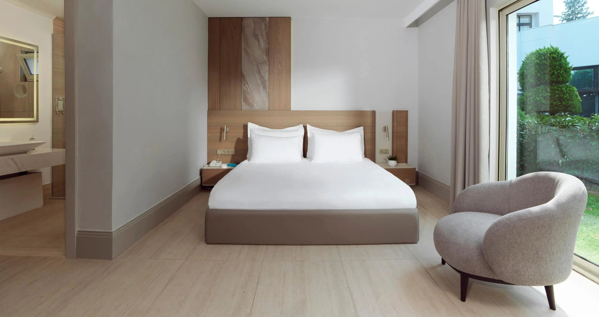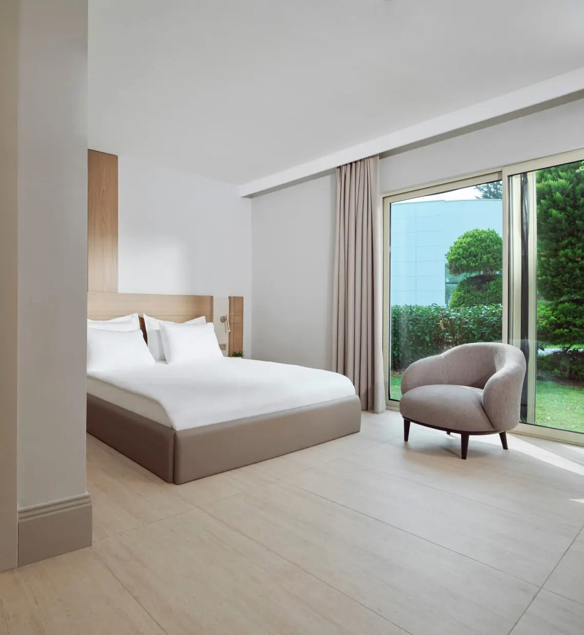 The wellness and relaxation experience is centered around a comprehensive spa complex featuring Turkish Bath, sauna, steam rooms, massage therapies, beauty treatments, and a fully equipped fitness center. Designed to restore balance and energy, the spa complements the resort’s stylish yet relaxing ambiance.