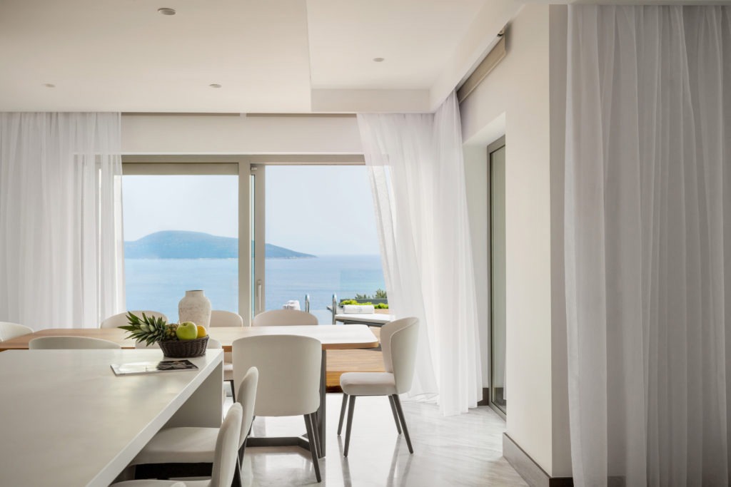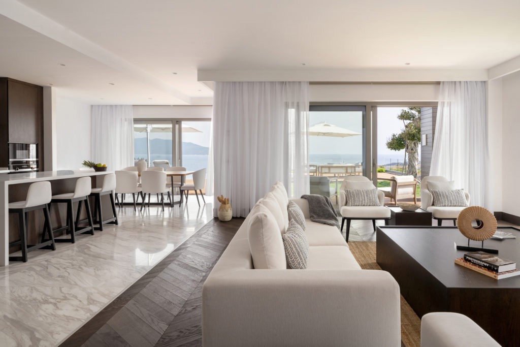 The exclusive wellness areas within Villa Poseidon elevate the accommodation experience even further. Guests can enjoy a completely private relaxation experience thanks to the sauna and dedicated wellness spaces, while the elegant living areas and sophisticated details throughout the villa complete the feeling of upper-scale comfort.