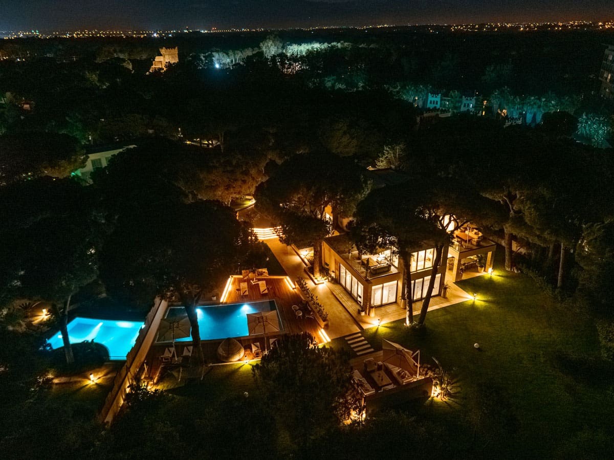 Outdoors, the villa showcases a grand private swimming pool set within an expansive landscaped garden, creating a secluded sanctuary for relaxation, exclusive gatherings, or tranquil Mediterranean evenings. Wide terraces, sun lounging areas, and private outdoor seating provide an villa-style atmosphere where space and privacy define the experience.